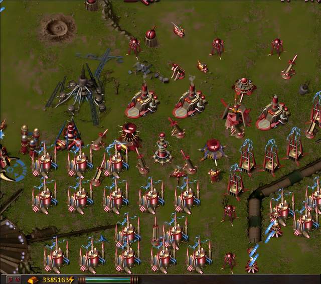 不过与当年国外那些在全球范围内广泛传播的RTS大作相比,《铁甲风暴》的确还存在着一定的差距。尤其是在阵营设计方面,除了建筑风格和个别移动单位设计不同外,其他内容几乎完全相同,要是和《星际争霸》那样,把每个阵营都增加一些独特的单位和玩法风格,相信它的结果一定会好上很多。